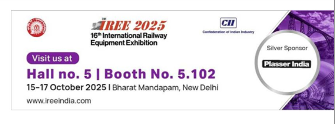 Wir freuen uns sehr, bekannt geben zu dürfen, dass wir erneut gemeinsam mit unserem geschätzten Partner Plasser India an der International Railway Equipment Exhibition (IREE) 2025 in Neu-Delhi teilnehmen werden.