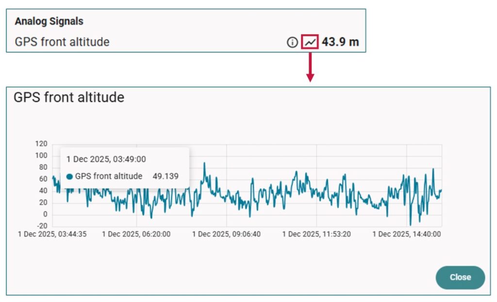 In the cockpit we’ve enabled Quickcharts for analog, digital and big numerical signals provide instant 24-hour signal history. Fleet Data Analytics also gets more flexibility: charts can now be reordered or hidden, and table visuals are unified across all views. Breadcrumb navigation is consistent between tmOS and Administration, making deep-dive workflows far easier to follow.